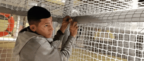 緊接著就是地膠的鋪設(shè)。工人們先清理好地面,再把地膠一個個對接好,用滾筒壓實(shí),保證地膠貼得緊實(shí)、不起鼓。地膠鋪完后,還要安裝防墜網(wǎng),對場館內(nèi)的高處進(jìn)行安全防護(hù)。防墜網(wǎng)安裝時,工人們會檢查每一個固定點(diǎn),確保網(wǎng)子拉緊、結(jié)實(shí),不會有松動的情況出現(xiàn)。