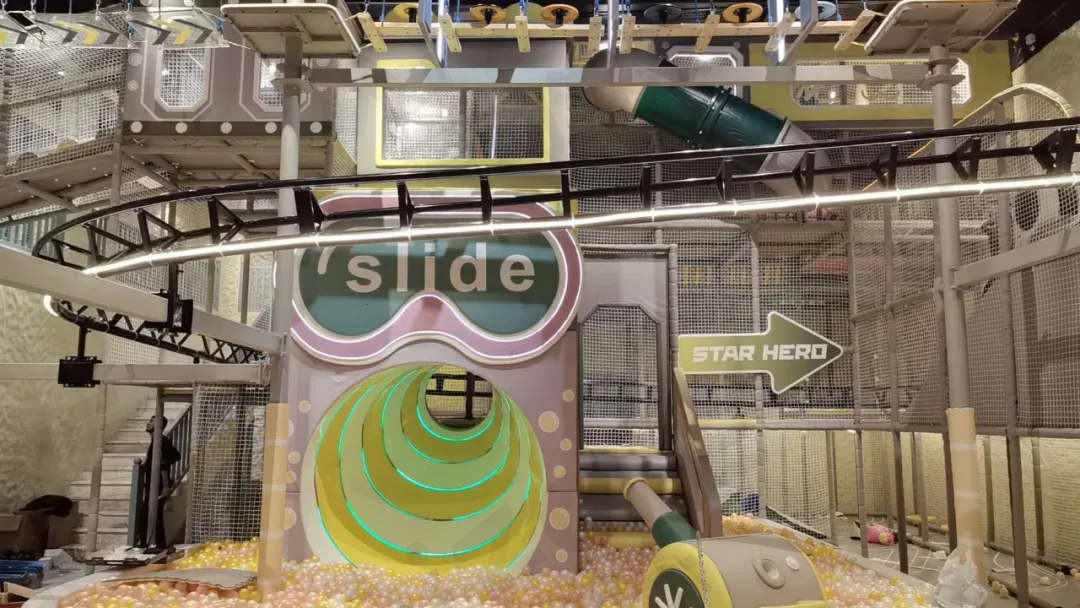 基礎(chǔ)工作完成后,就進(jìn)入了安裝重點(diǎn)。首先是海綿球池的搭建。現(xiàn)場的施工隊(duì)按照順序把球池的各個部分接好,確保結(jié)構(gòu)牢固,再把海綿球填入球池中。球池是運(yùn)動潮玩館里最吸引人的區(qū)域,要求結(jié)構(gòu)既要安全又要有足夠的緩沖效果,所以安裝時反復(fù)檢測,確保萬無一失。