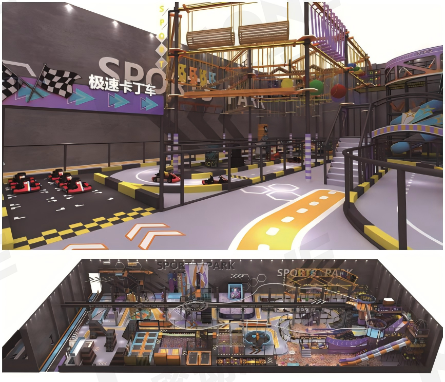 想象一下,你踏入了一個由未來科技力量編織的夢幻世界——“未來空間”。這里,高空繩索仿佛被施加了魔法,變成了一道道銀色的閃電,帶你穿梭于天際之間,體驗一場前所未有的飛天冒險。網狀攀爬設施則化身為一張巨大的科技蜘蛛網?;涝O施,就像是速度與激情的狂歡派對,讓你在飛馳中感受科技帶來的無盡樂,里面還有很多的極限運動等待著你們前來探險和征服。