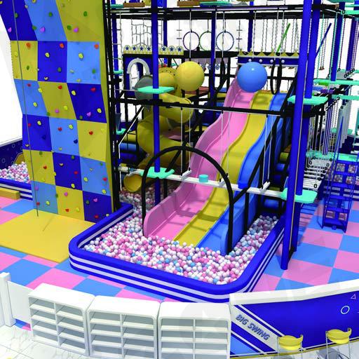 圓形中庭以紫色為主調(diào),營(yíng)造出神秘夢(mèng)幻的氛圍。高空拓展區(qū)域環(huán)繞球池,黃色螺旋滑梯盤旋而下。抱石攀巖墻成為勇敢者的試煉場(chǎng)。紫色海洋中點(diǎn)綴藍(lán)黃,營(yíng)造獨(dú)特運(yùn)動(dòng)空間,讓人躍躍欲試。