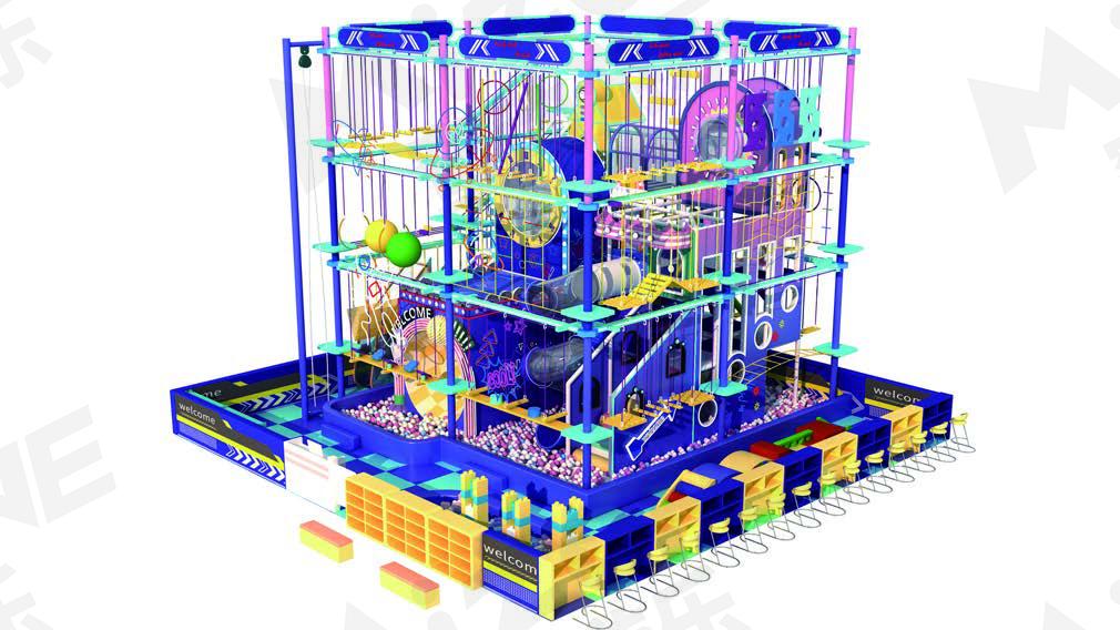 紫色如魔法夜空,藍(lán)色星光點(diǎn)綴其間。球池里,小球跳躍,猶如歡樂(lè)的海洋。高空拓展區(qū),挑戰(zhàn)設(shè)施錯(cuò)落,宛如天空之城。螺旋滑梯,如同穿越時(shí)空的隧道,體驗(yàn)極速飛馳。拓展里的喇叭滑梯獨(dú)特滑行樂(lè)趣無(wú)窮。整個(gè)場(chǎng)館神秘而又充滿驚喜,徹底激發(fā)孩子們的無(wú)限想象力,仿佛踏入了一個(gè)夢(mèng)幻的童話世界。
