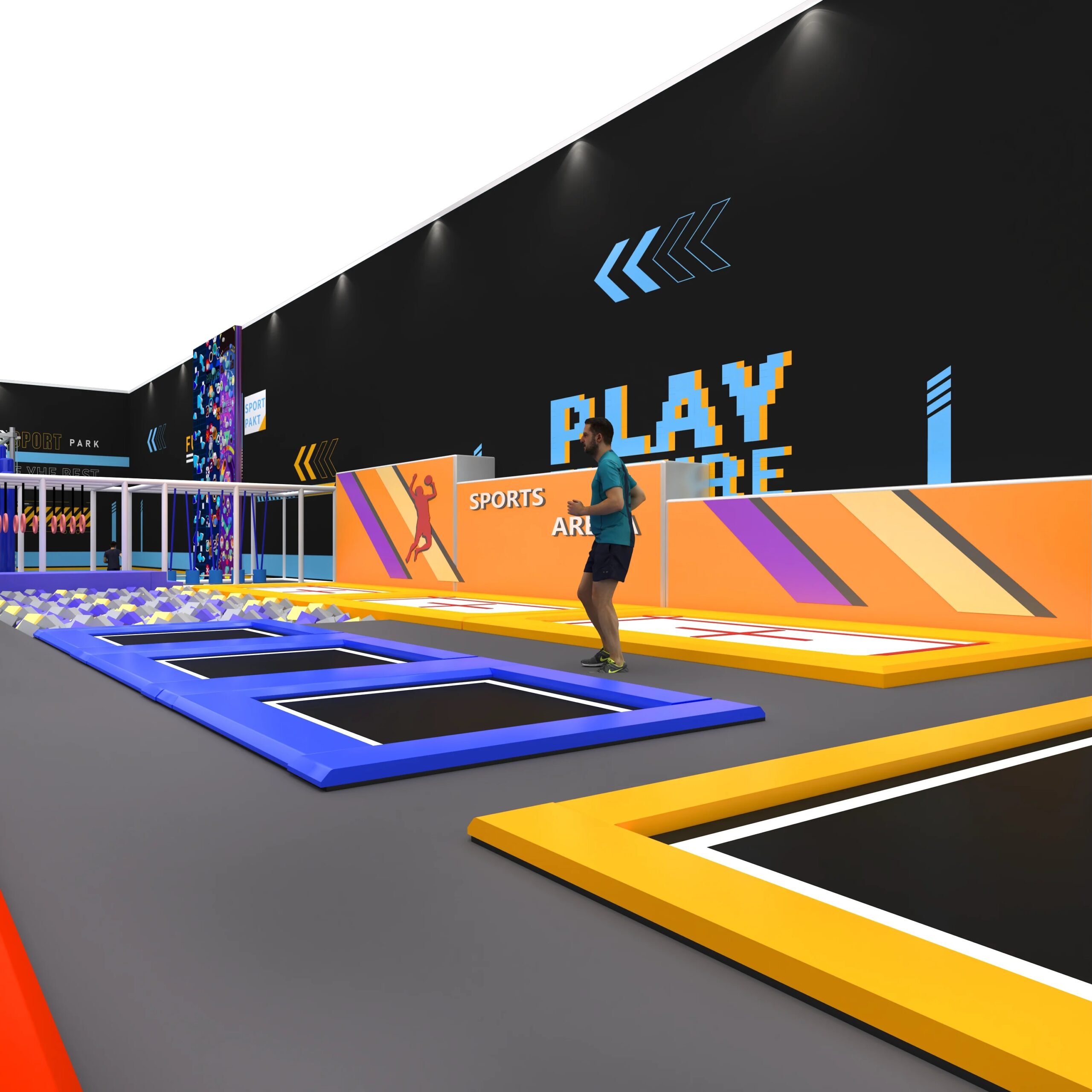 材料上我們也舍得下本錢。安全繩單股強(qiáng)度3500N,能承重1000公斤;蹦床平臺(tái)用18厘米實(shí)心膠合板,防滑又耐踩;皮料是PVC環(huán)保阻燃的,達(dá)到B1防火等級(jí),比普通PU皮壽命長(zhǎng)3倍。去年我們?cè)诟=◤B門做的2200㎡蹦床館,高度10米,包含攀巖、海綿池等項(xiàng)目,加盟商反饋說(shuō)設(shè)備穩(wěn)當(dāng),孩子們玩得開(kāi)心,家長(zhǎng)也放心,開(kāi)業(yè)一年客流就沒(méi)斷過(guò)。