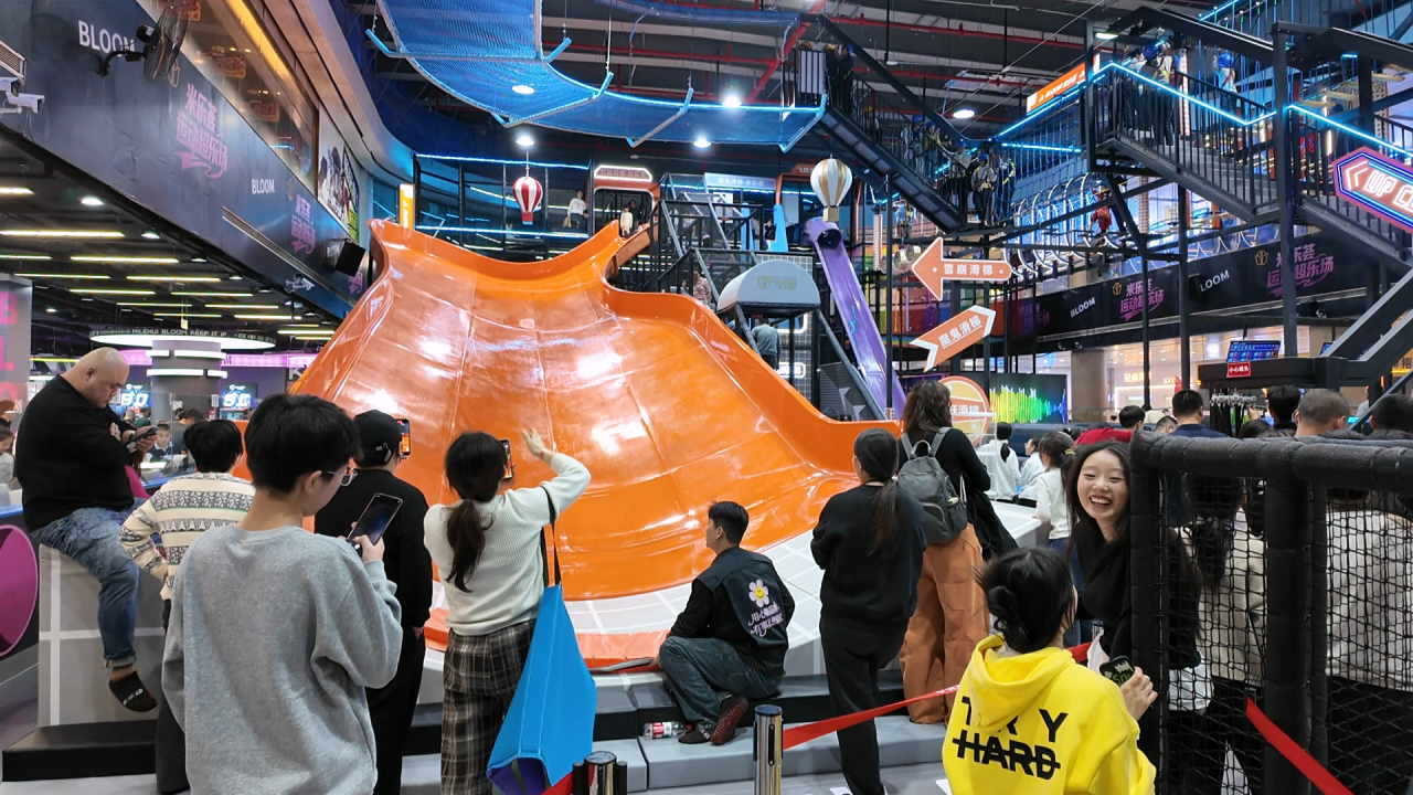 “逆戰(zhàn)風(fēng)暴潮玩運(yùn)動城”是蜜動游樂打造的全新概念潮玩運(yùn)動主題場館。 場館內(nèi)炫酷燈光營造未來感,魔方攀巖挑戰(zhàn)智勇;高空拓展云端漫步,觀景臺凌絕頂。 360自行車飛躍,光輪摩托追風(fēng),空中飛人驚艷連連。彩虹步步高挑戰(zhàn)極限,蹦床釋放活力無限。 高空秋千自由飛,旱雪滑梯速降爽,飛流直下失重狂??ǘ≤囐惖擂Z鳴,速度與激情同在。